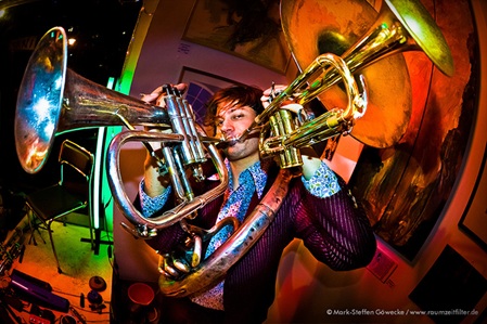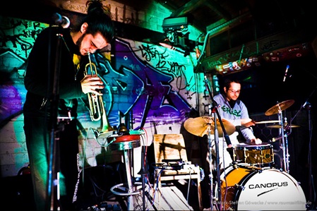 ... bedeutet hier live. - Menschen, die Musik machen, sind schnell ganz woanders und bekommen ihre direkte Umgebung nicht mehr mit. Als Fotograf ist man so der "Wahrheit" vielleicht ein Stückchen näher.
