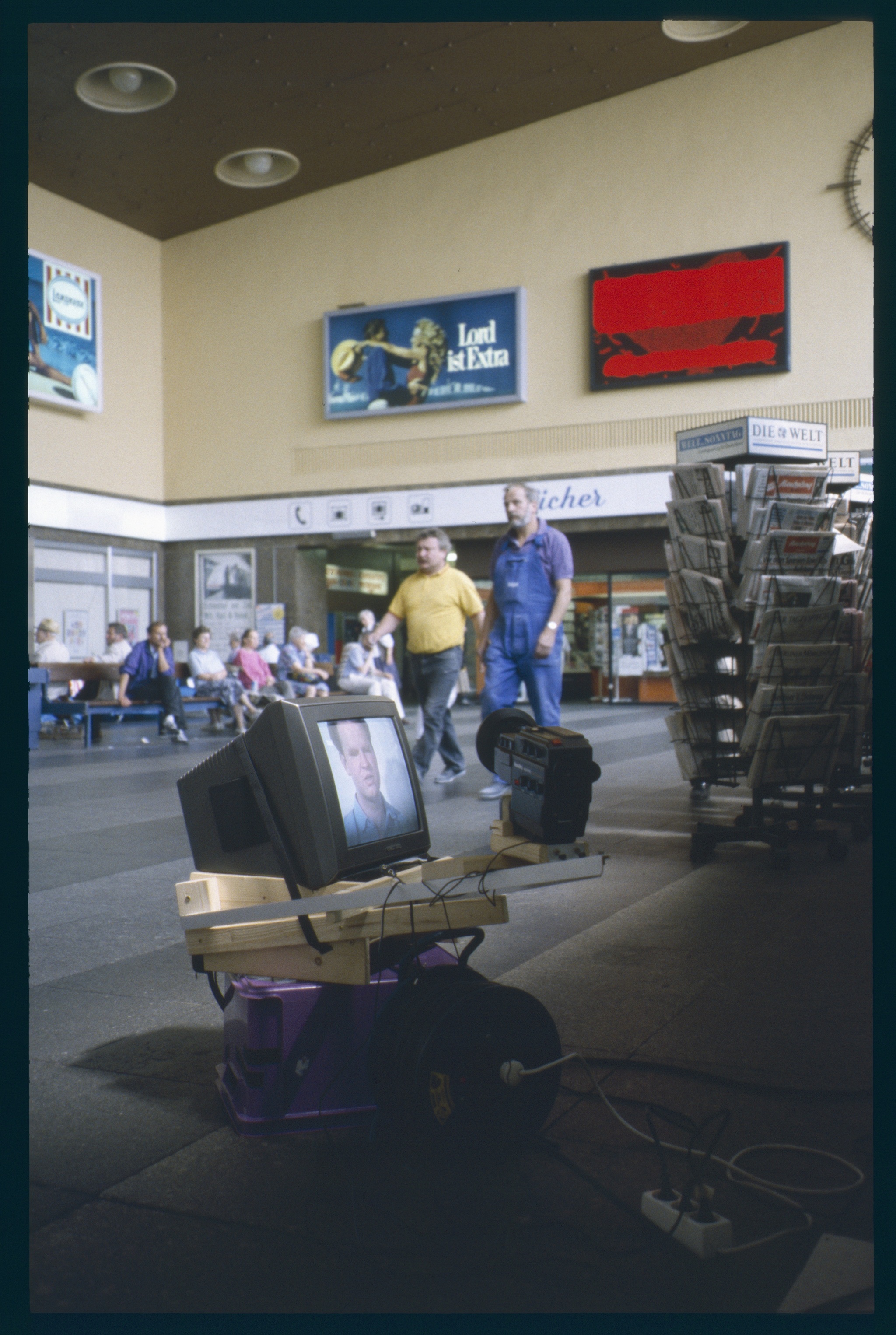 Das Bildschirm-Kamera-Rig im Würzburger Bahnhof