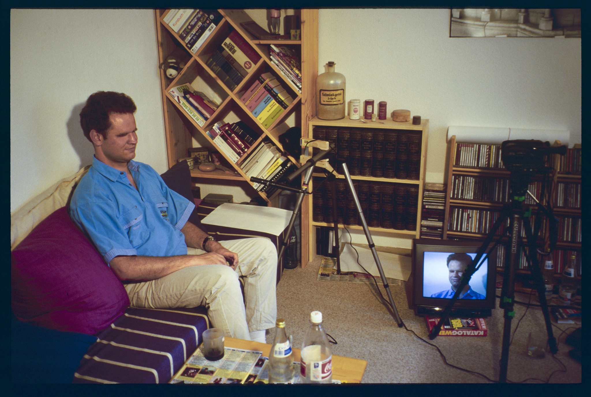 Als Abhilfe und zur Orientierung überhaupt, war auf dem Video - außerhalb des Filmbildes - ein Timecode eingeblendet, mit dem es möglich war, alle 4min das Band etwas zu spulen, um dann wieder exakt beim nächsten Bild fortzufahren. Somit war es auch möglich, den Film fast ohne Schnitte - trotz Orts- und/oder Zeitwechsel - in einem Guß zu belichten. - Fotos